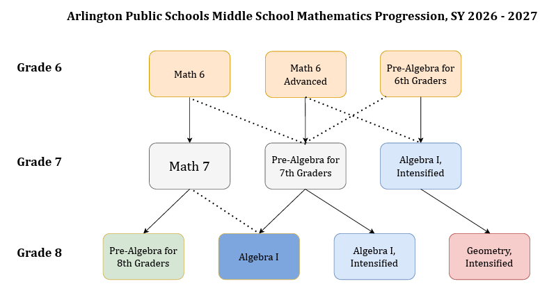 For sixth graders, APS offers one grade-level Math 6 course and two accelerated options: