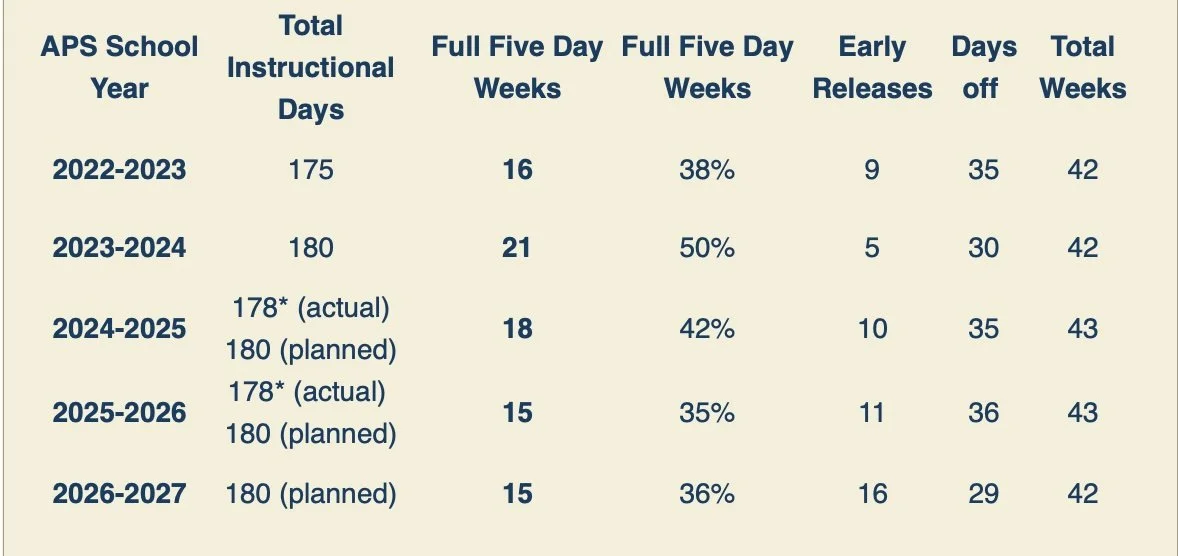 If continuity and attendance in school matters for learning—as APS states—then the current structure is working against learning. APS should revise its calendars and policies so they truly prioritize consistent instructional time and deliver a consistent education.